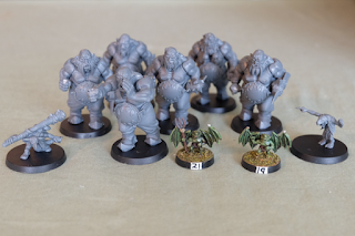 Speaking of green stuff… I have an Ogre team! … well I nearly have an Ogre team… what I have is 16 winged monkeys snotlings (that started life as 15mm Goblins which I have featured on the blog before. These are now supplemented with some genuine Ogres: