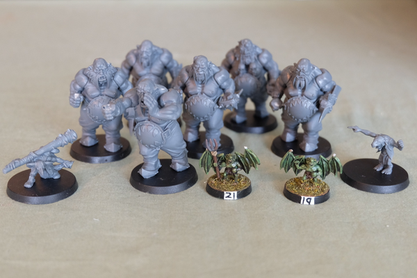 Speaking of green stuff… I have an Ogre team! … well I nearly have an Ogre team… what I have is 16 winged monkeys snotlings (that started life as 15mm Goblins which I have featured on the blog before. These are now supplemented with some genuine Ogres: