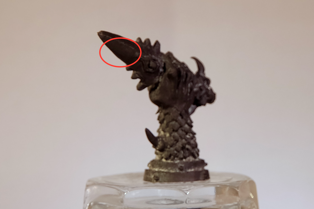 | Fanath resin – Although that looks like a scratch, it is a trick of the light, if anything this appeared to be the least affected model. |