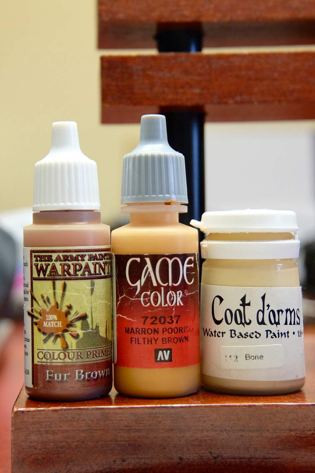 I have found it really important to start with a much darker color than you think you are going to need. Here I started with Fur Brown and I think that even this is a little too light really. If I\’d had more patience, I would have brought it up from Oak brown. Even though you don\’t really leave any of this darkest color showing; it comes through in the depth and helps shade the recesses.