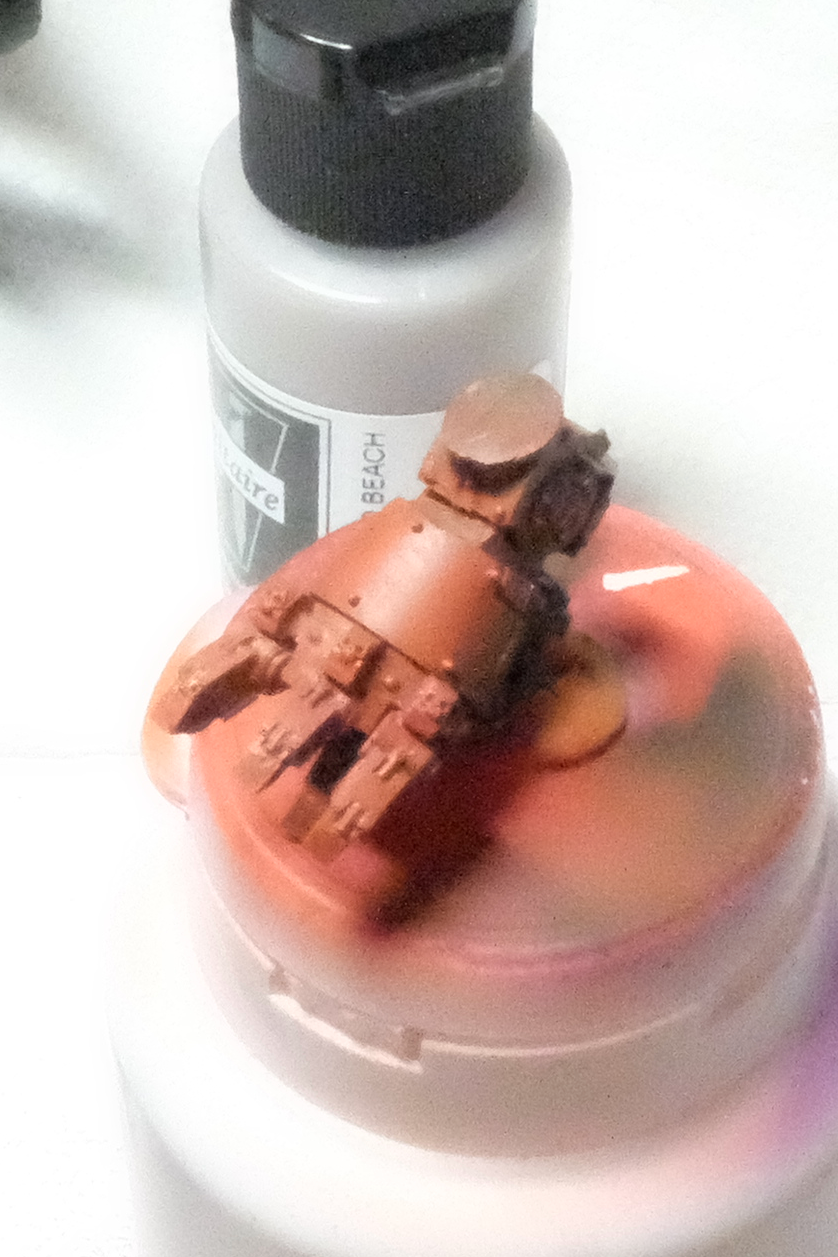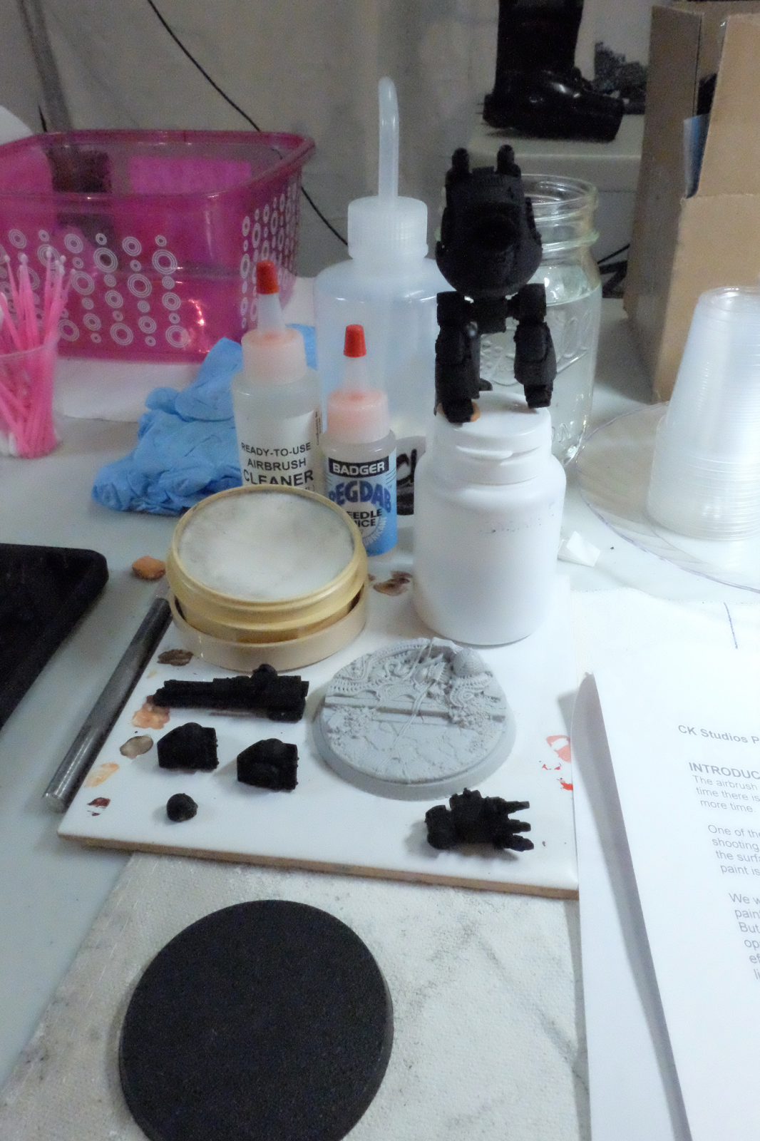 Much of the first morning was theory and Airbrush usage (cleaning, maintenance, how not to destroy it etc.) before we did a couple of quick coats – a zenithal highlight and a directional basecoat. I totally neglected to take photos of all this sadly… and this will become a repeating story in this post. I got so carried away with the class that the blogging fell by the wayside.