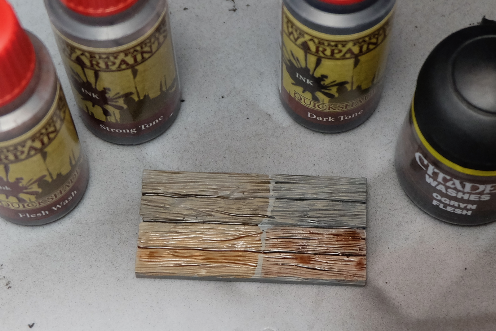 Of course, having settled on the base, I needed to tint the wood, get the shading in place. I tried 4 washes: