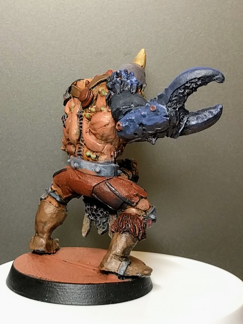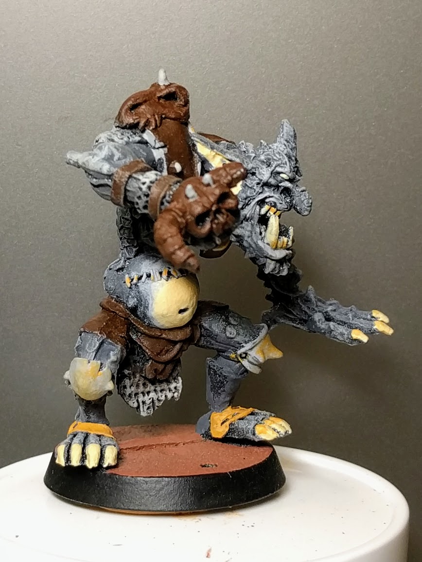 Painting has progressed fairly well before I was struck down with a rather unpleasant case of food poisoning. The result has been stalling out on the work and not being able to complete my Chaos Pact team before leaving for the US. I have, however, got a few photos from before I caved to illness: