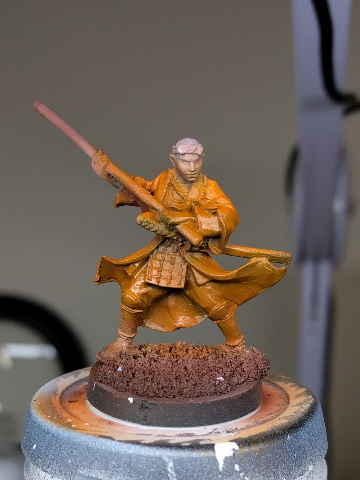 A recent post on a Facebook Group I follow called Paint All the Minis challenged painters to attempt a colour they\’ve struggled with in the past. This was really perfect timing for me as one of the figures that had been sat in my lead mountain was Warrior Monk Masahiro from this Test of Honour box. I wanted to go with the traditional orange robes but this has always been a tricky colour for me.