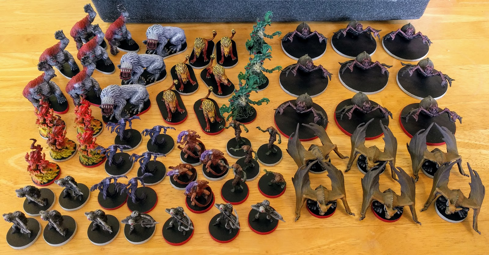Coming off the warm-fuzzies of knowing that I\’d worked through all the Mansions of Madness minis I have. I wanted to keep up the momentum. Slightly hindered by some business travel, I have still had an amazingly productive 2 weeks. 62 minis worth of productive in fact! I currently have 168 Descent monsters, so I\’ve painted more than 1/3 of them in two weeks which feels great. Of course, as with the Mansions of Madness, I\’d done all the prep and some fairly extensive airbrushing work to get a jump start on them.