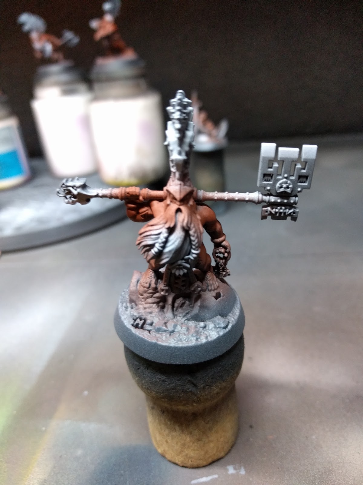 The Skull that Fjul-Grimnir is stood on was painted with a layer of Vallejo Model Colour Chocolate Brown, highlighted up with VMA Sand and the lower areas were glazed with Reikland Fleshshade.