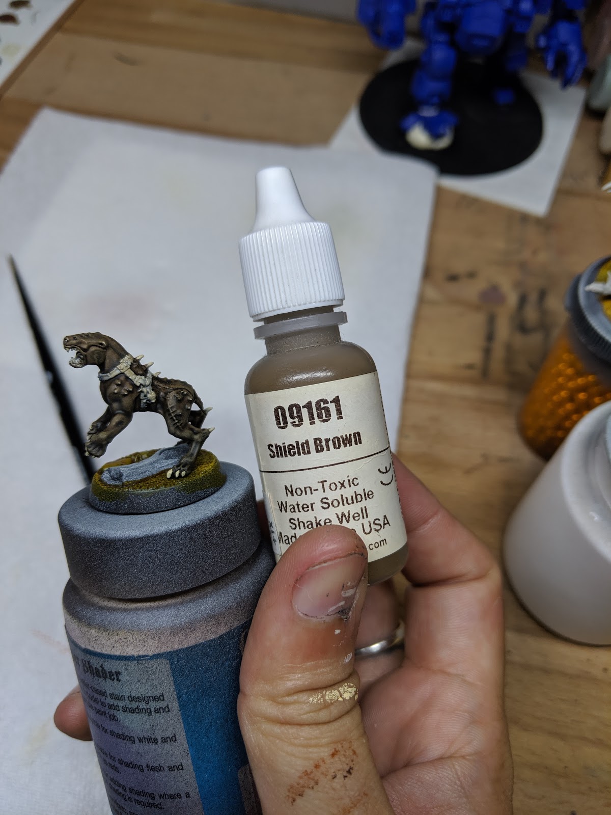 In an effort to fix Grawl\’s fur – I used a drybrush followed by a textured highlight of a reaper colour I had in my arsenal – Shield Brown. It worked to an extent but still didn\’t really wow me. In the vein of the old Teri Litorco mantra \”Done is my favorite color.\” I didn\’t get hung up on it and moved on.