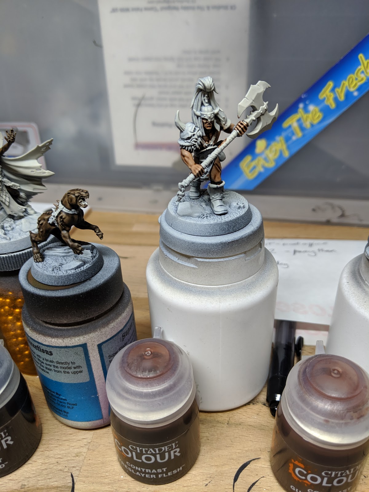 Grundann is clearly a Sun-bronzed Conan-like dude and seemed the perfect candidate for Fireslayer. It\’s a great tone for that \’bronzed flesh\’ but again needs a warm paint to lay over.