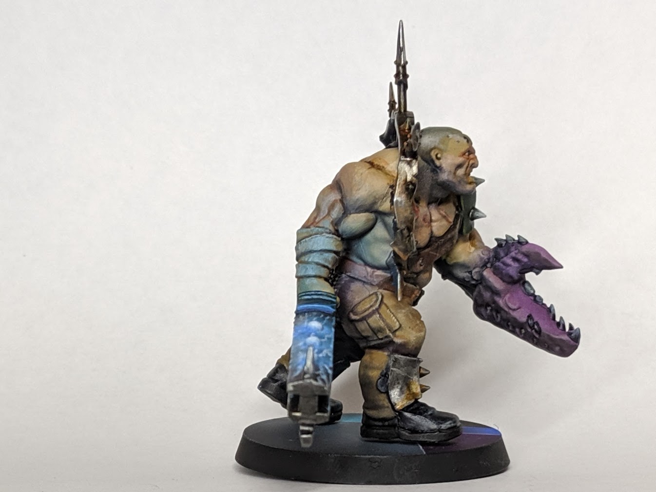 This whole project has been mapped based on the idea of painting an army. The Chaos Ogryn (along with the Ambull) are much more Monster/Vehicle than anything else in the kit… the more observant of you will notice that Chaos Ogryn is also not on the initial roster of models. Traitor Command came out part way through and I\’d jumped on it, cracked it and assembled before I even knew what was happening. Suddenly I had two new models – one the perfect size to do some great skintone work – or at least that was the intent. I started working on it in a hurry and somewhere along the lines it went a little sideways: