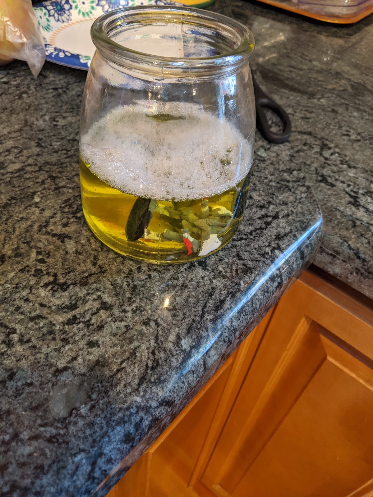 I took a glass vase that was lying around. Chemistry class taught me that glass is inert so if in doubt – probably the best thing to put random chemicals in! (School\’s got it\’s uses folks.)