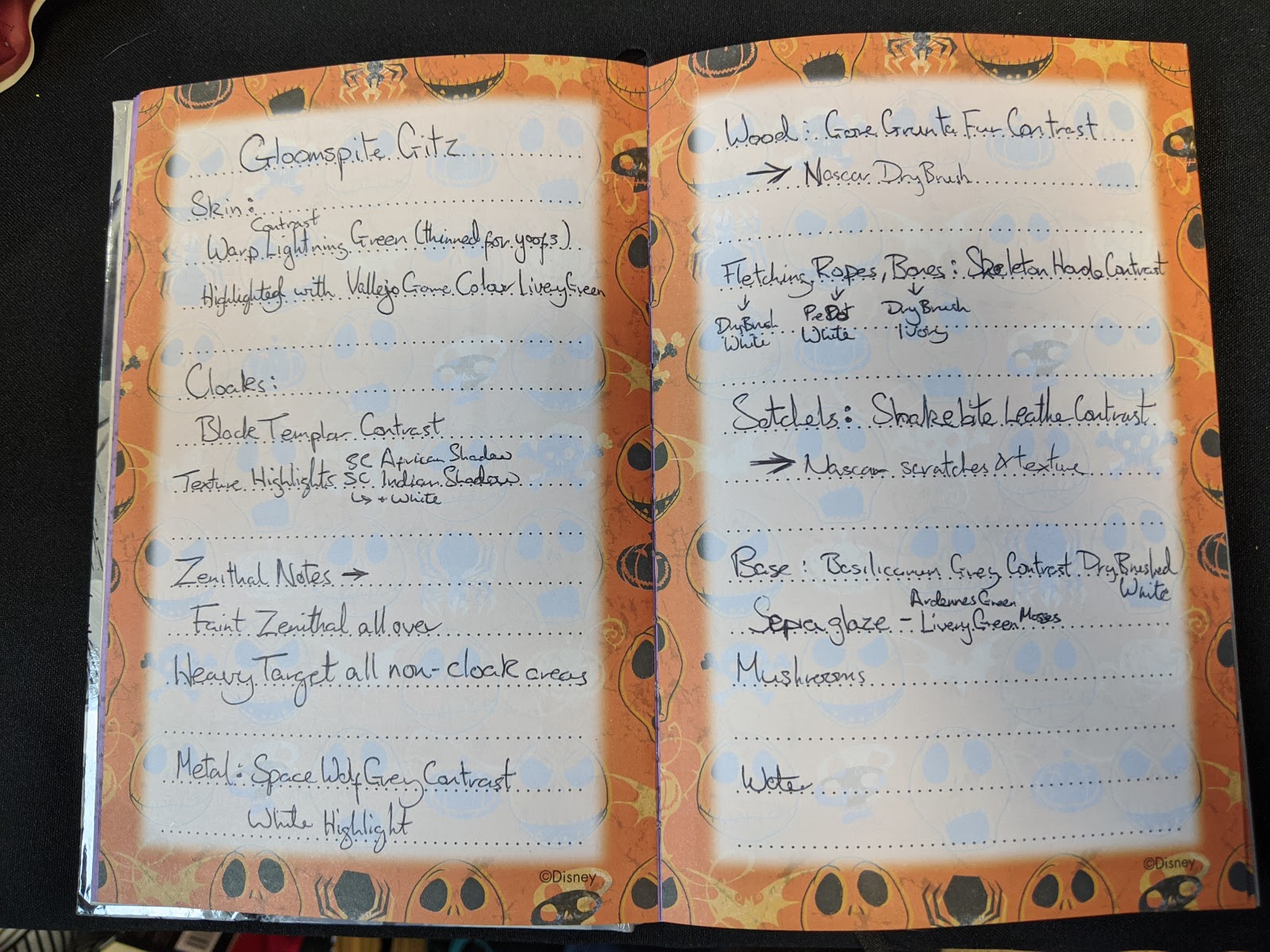 In addition to having this reference, I also took notes on the process that I wanted to utilise. The method by which you take notes is highly individual and varies a lot from person to person. I know some folks that love to use an app or digital note taking, some will paint swatches into notebooks for a colour reference. The most important thing is that you have enough detail that you will be able to reproduce a matching model years later when you\’ve forgotten everything you did originally. I\’ve spoken before about how I stick to simple paints when painting for armies rather than custom blends – again this helps you reproduce the same results over time (assuming the paint is still available of course!). Here are the notes I made for my Gitz:
