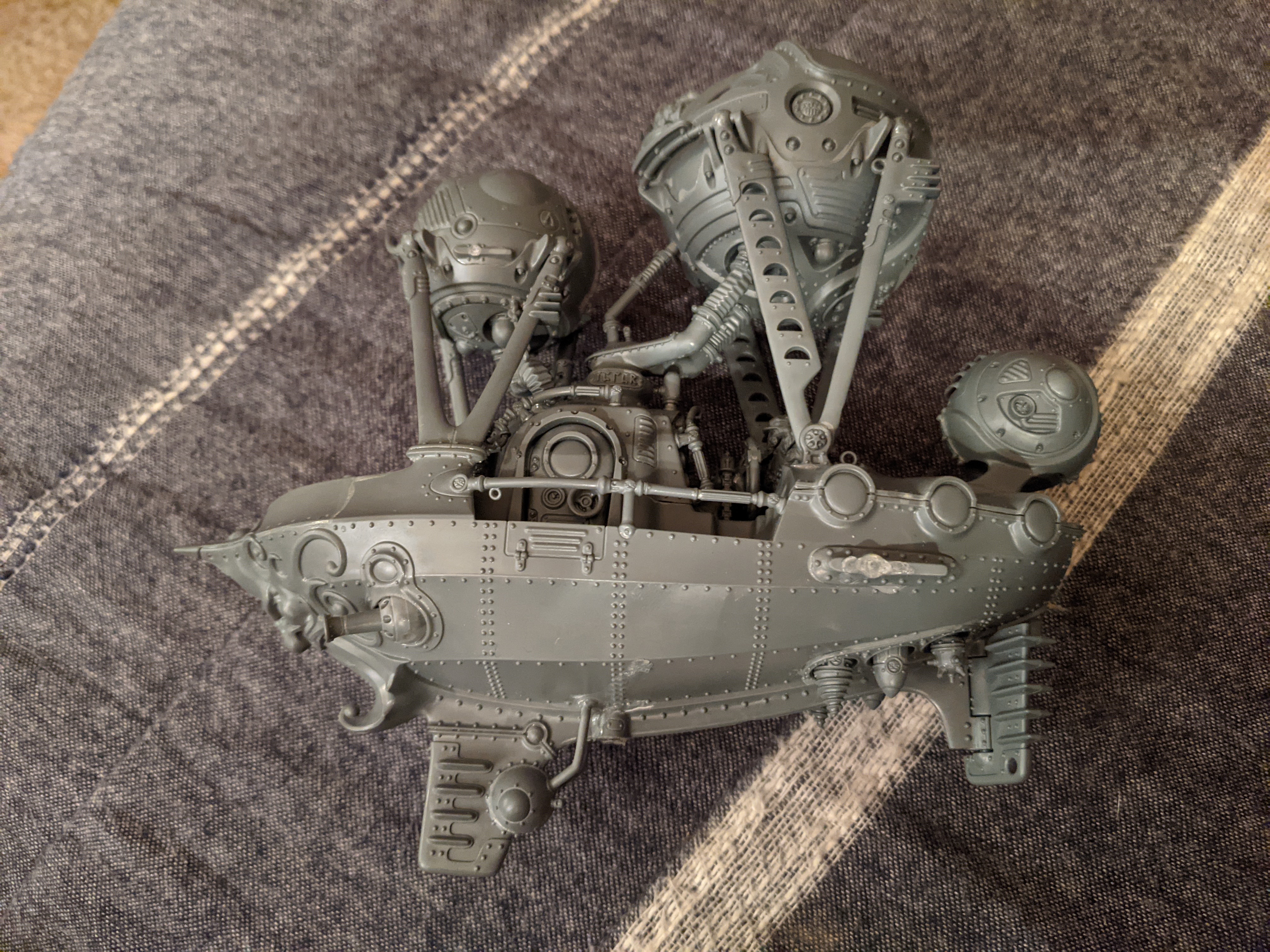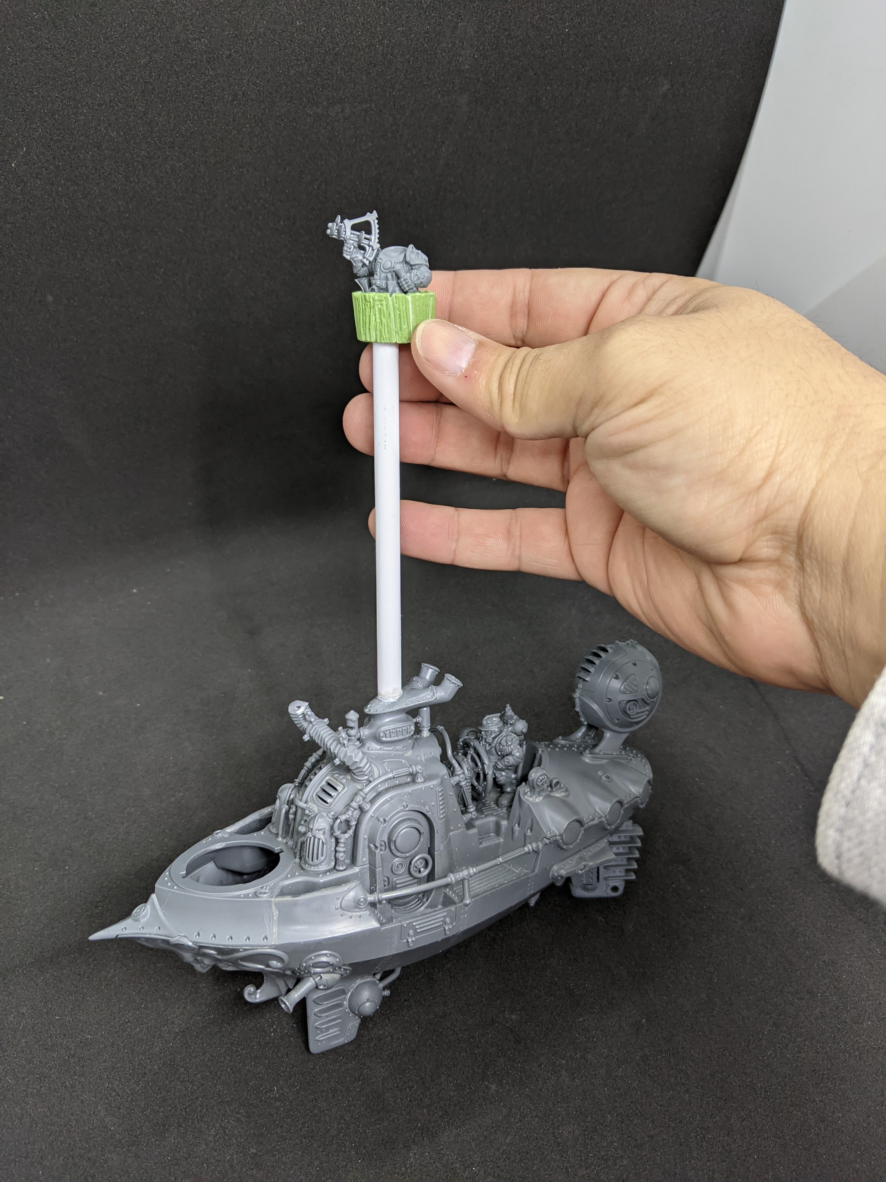I like the idea of sky ships and I understand the in-universe reasoning for giant metal balloons to make it float… but I never really dug the aesthetic of them. My original plan had been to sand the balloons down and do some crazy awesome freehand all over them… there were a couple of problems with this plan. I still didn\’t feel it was particularly in line with pirates and of course the bigger problem – I am far from capable of sane awesome freehand let alone crazy… Taking a closer look at the sculpts I also realized that simply sanding down was unlikely to be effective as the detailing on the surface is extensive so a smooth spherical finish would be challenging.