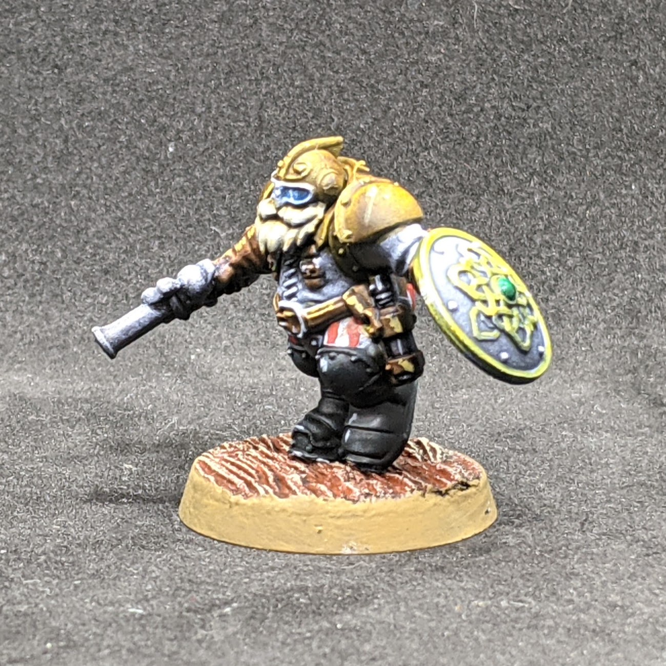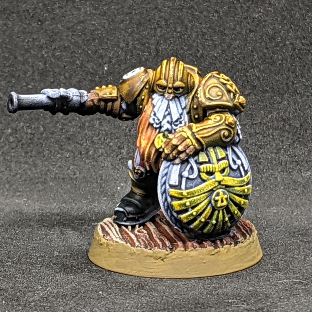 I\’d kicked off my participation in #taleof5painters with a squad of cutlass armed pirates, and I knew my second squad would take the hatchets… a little less piratey but it makes them distinct. But… what to do for the third squad? Well having lost an axe arm, I found a random Ironbreaker shield arm to attach to one of the models and decided I really liked the look of a pistol and shield. Certainly not the most traditional of weapon pairings but, as 30k fans will tell you – Breachers have a certain je ne sais quoi to them and I think these chaps are no different.